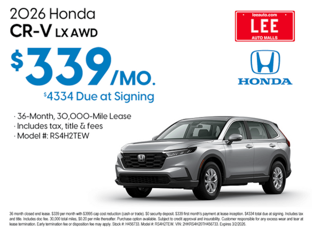 - Loyalty/Conquest Offer: $1,000 offer on select 2026 Honda CR-V HybridDetails